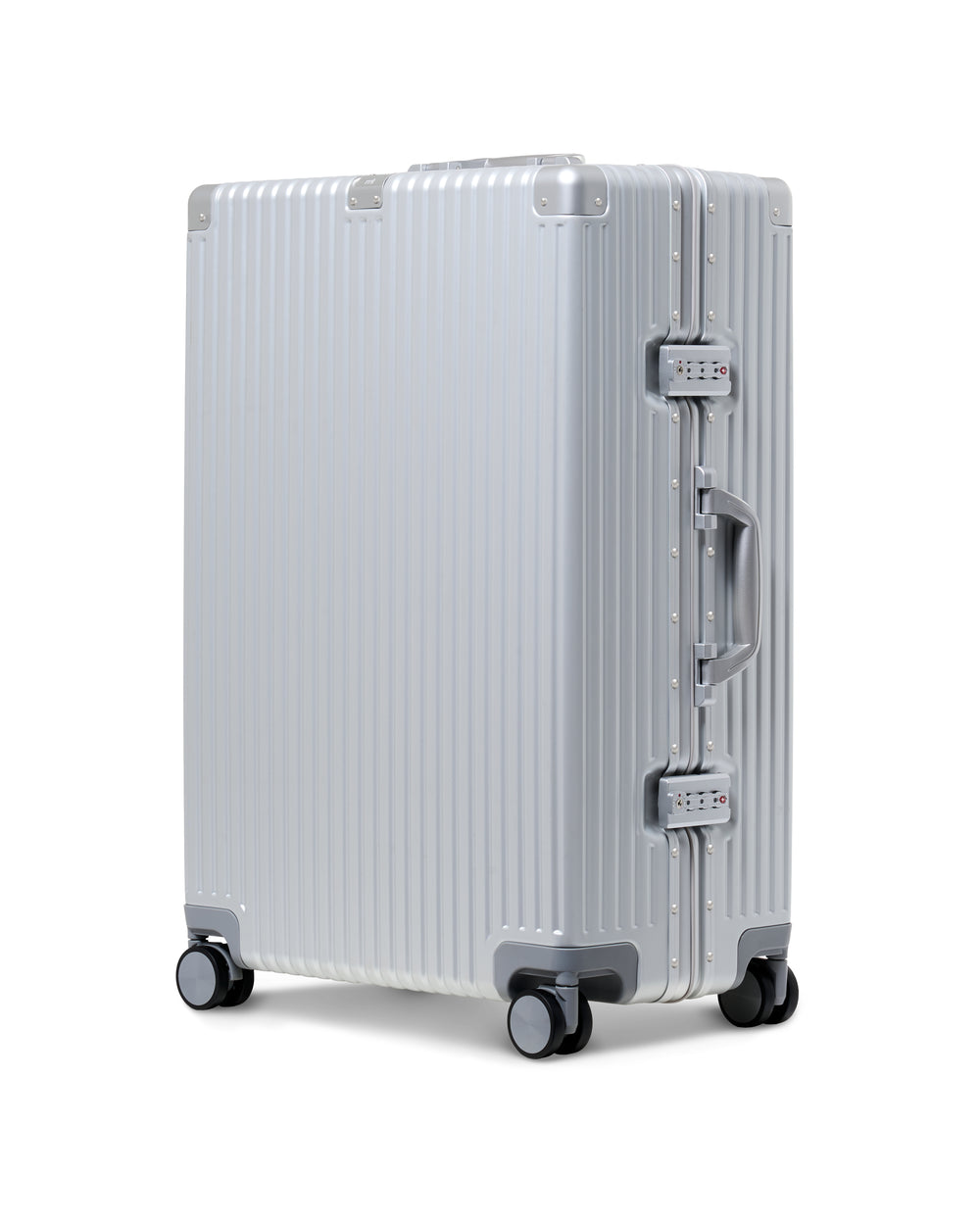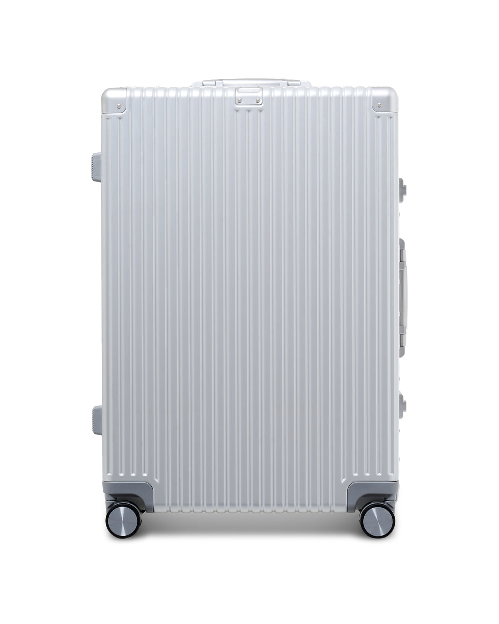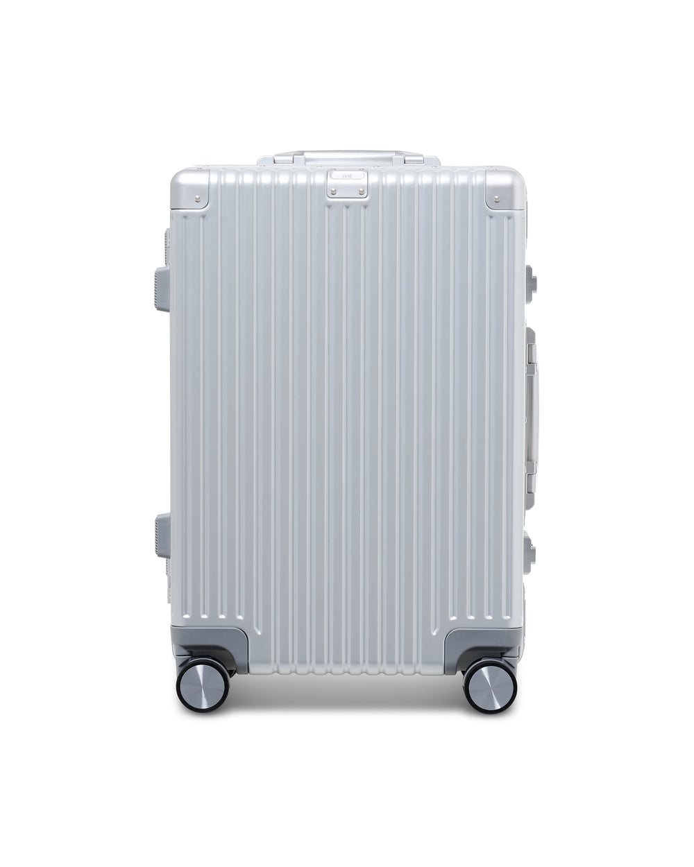 حقيبة السفر المتوسطة باللون الفضي تجمع بين المتانة والأناقة لتكون رفيقك المثالي في كل رحلة. تصميمها العصري وخامتها القوية يمنحانك تجربة سفر عملية وآمنة، سواء كنت متجهًا لرحلة عمل أو إجازة.