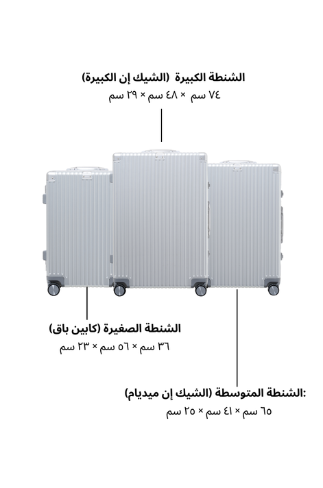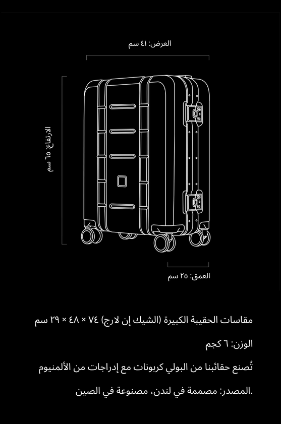 بولي كربونات قوي مع زوايا مدعّمة بالألومنيوم لتحمّل ظروف السفر القاسية
