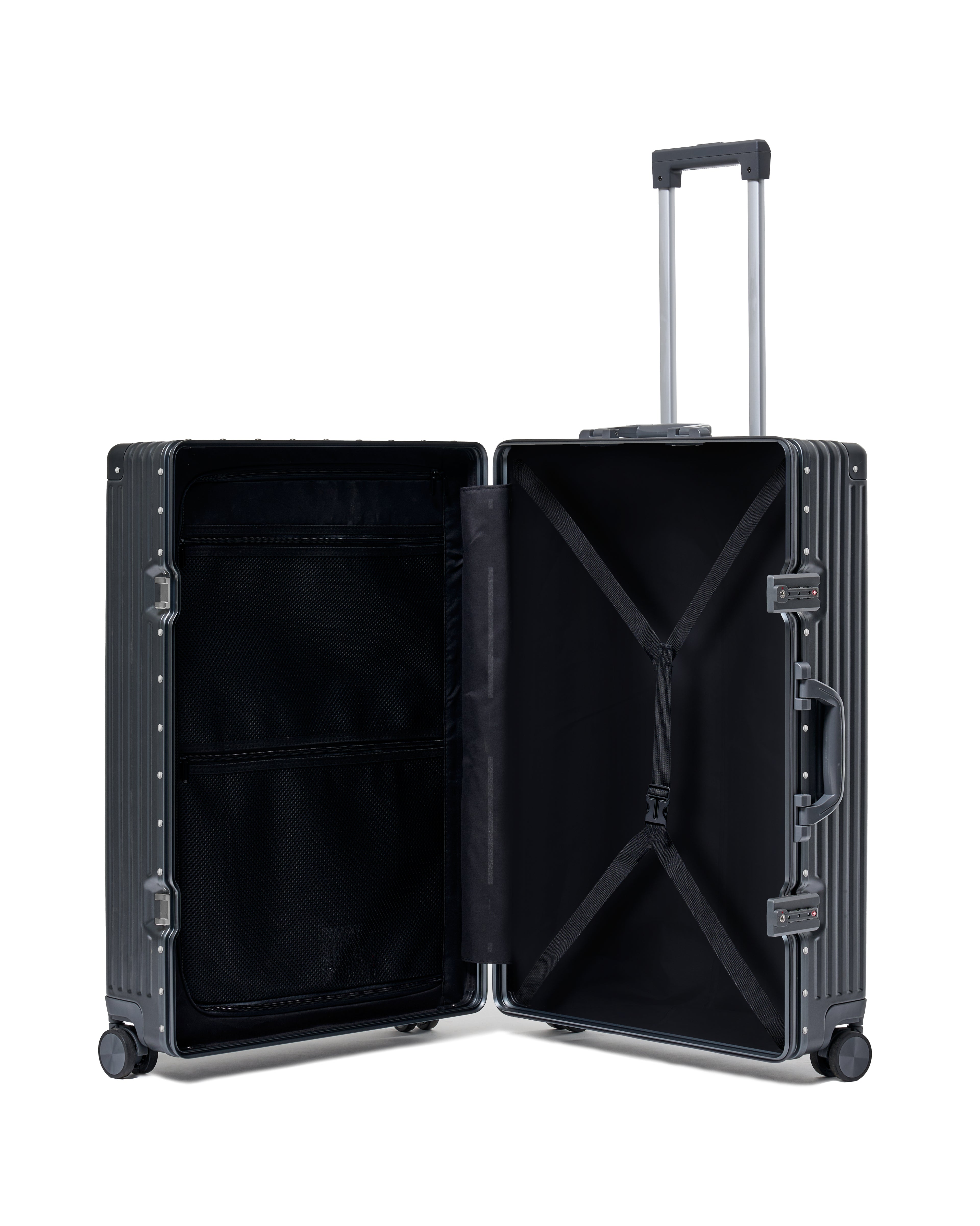 Built for strength and durability, this rolling suitcase withstands rough handling by baggage handlers. It features a heavy-duty polycarbonate hardshell with reinforced aluminum corners for added protection.